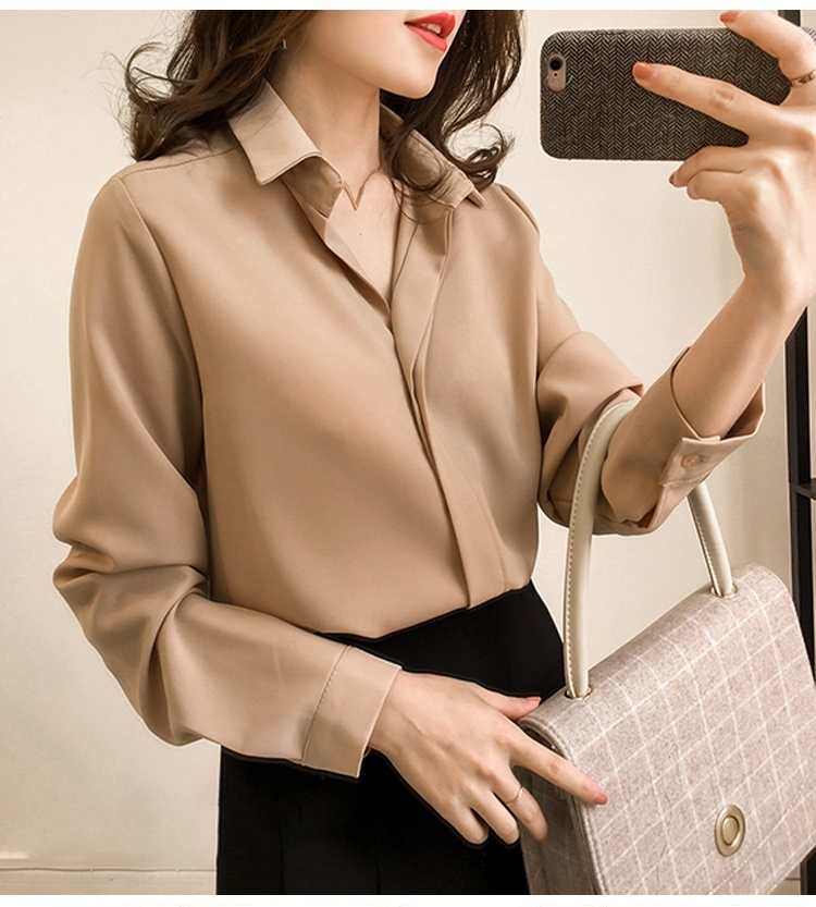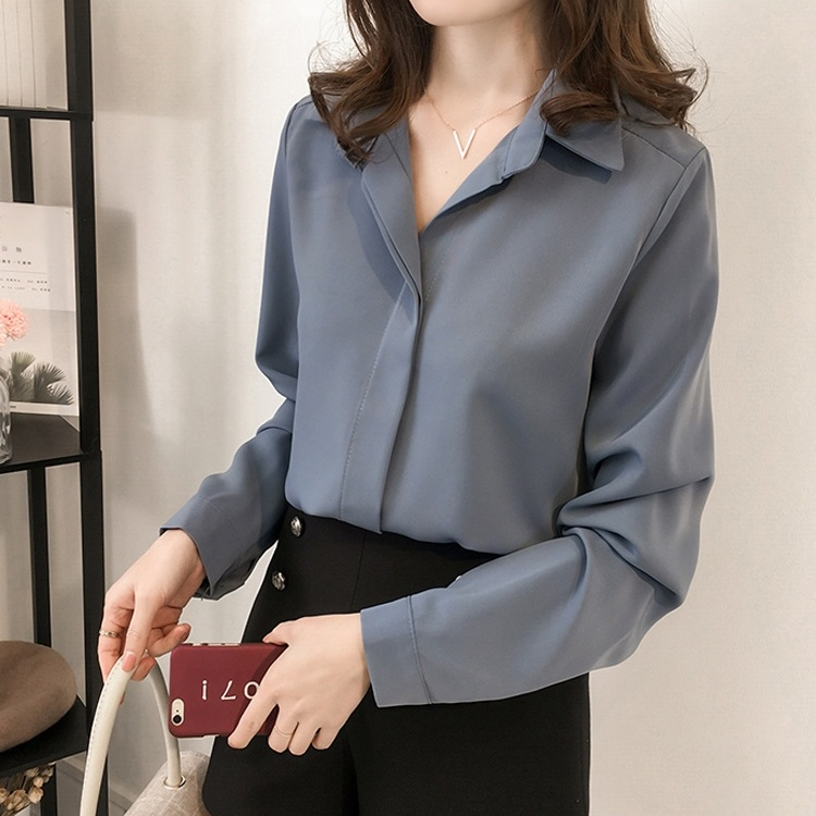 봄 한범 여 긴팔 셔츠 솔리드 이너 쉬폰 상의 봄 한범 긴팔 셔츠 이너 쉬폰 셔츠